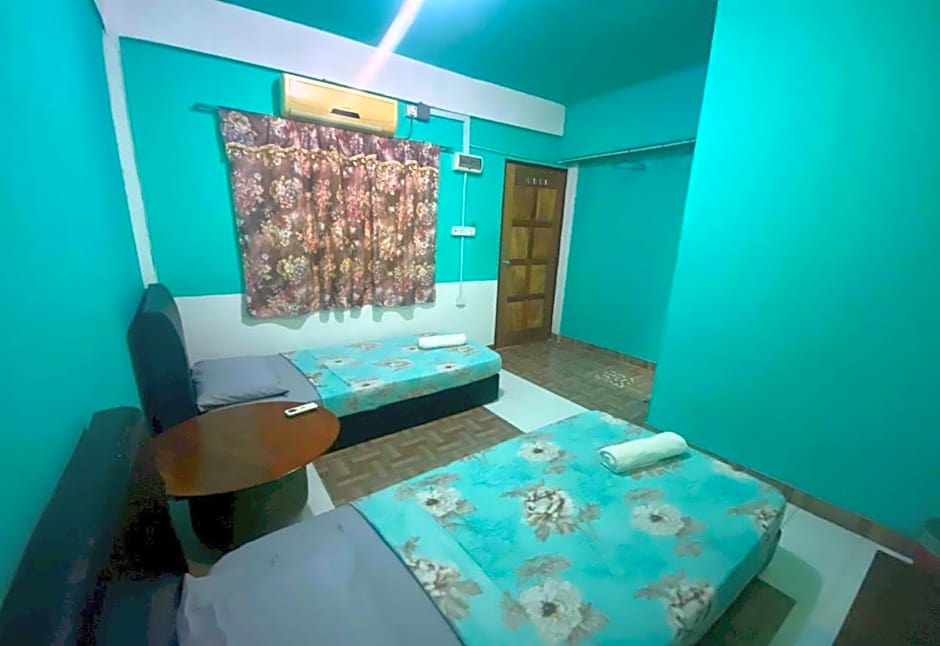 Featuring brightly painted green walls, air-conditioned rooms are simply furnished with a desk, an electric kettle and a flat-screen TV. Rooms come with an attached bathroom offering shower facility.